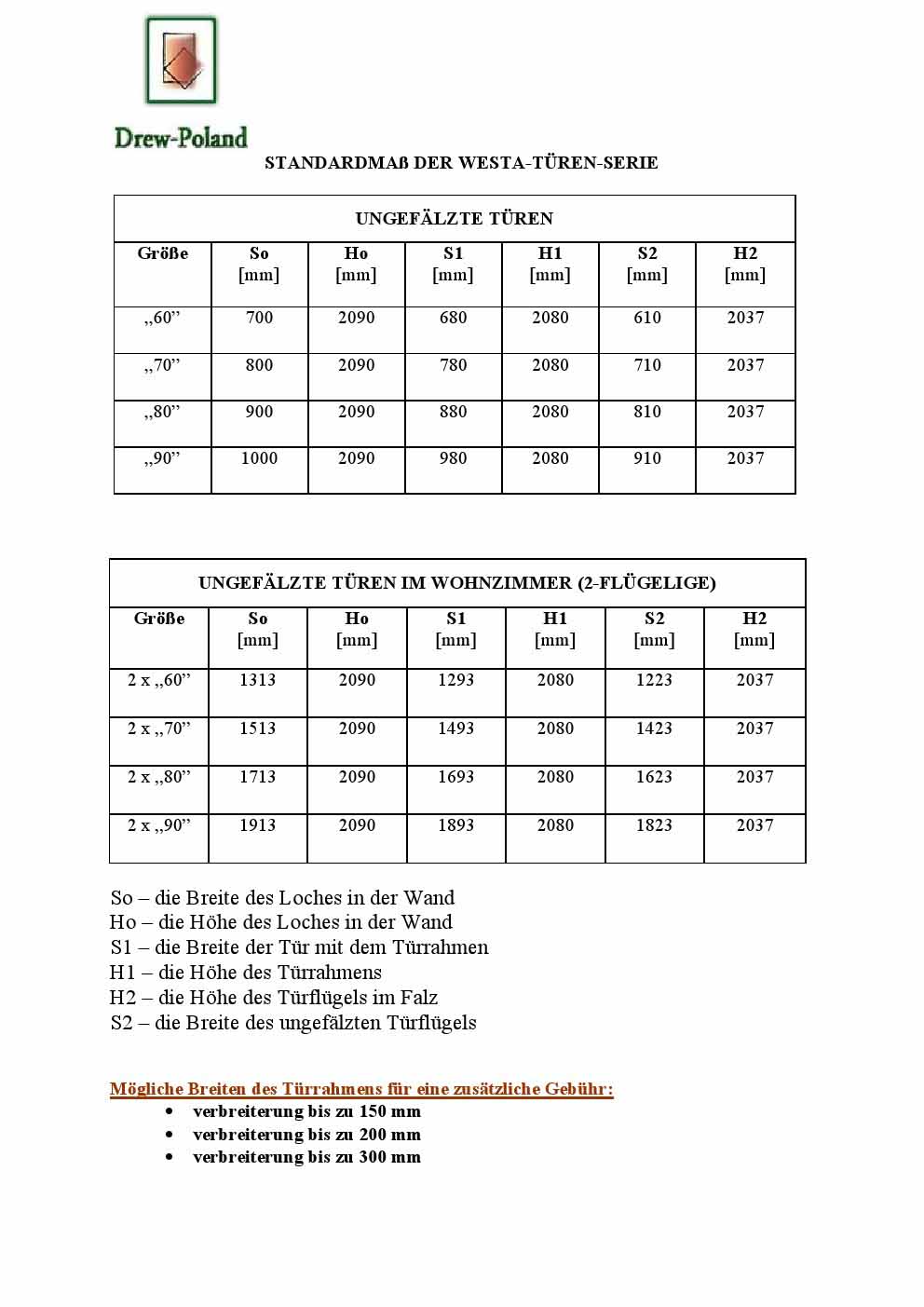 STANDARDMAß DER WESTA-TÜREN-SERIE
