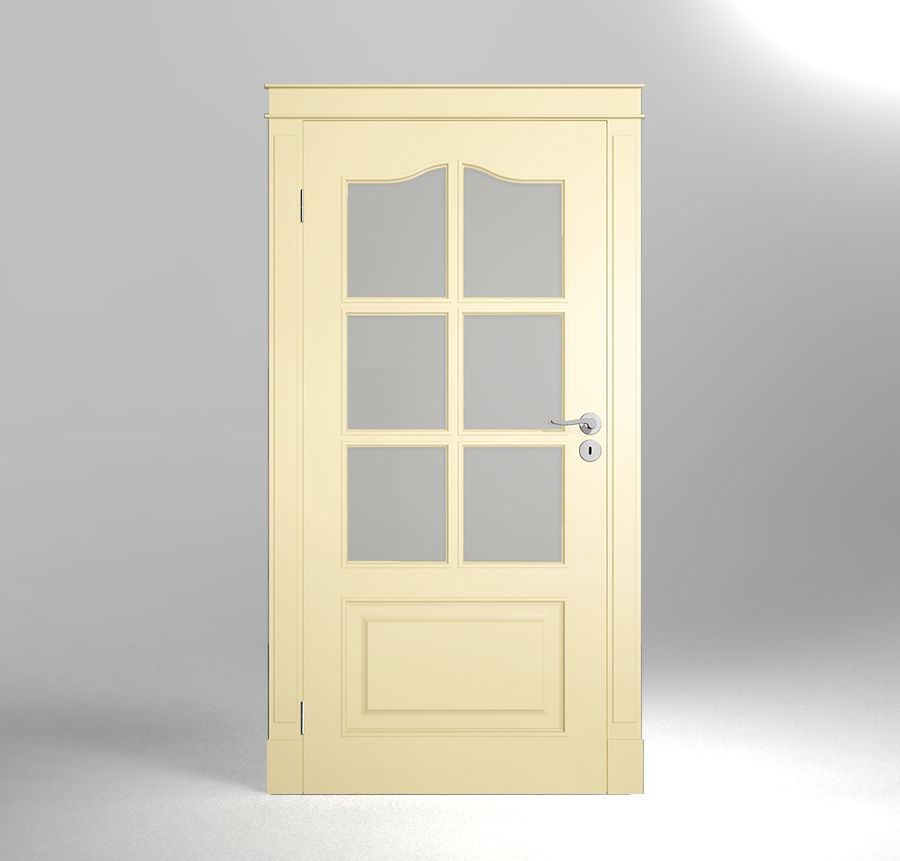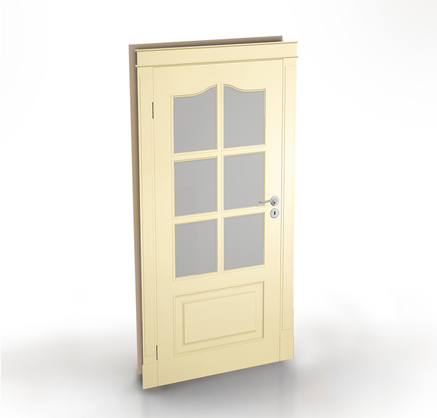 - the upper part of the wing is satin, ornamental, or lacomat glass, decorated with slats