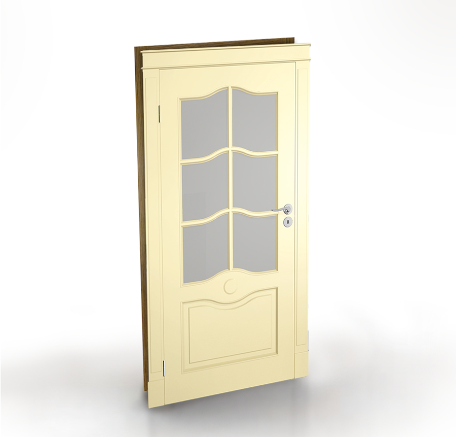 - the upper part of the wing is satin, ornamental, or lacomat glass, decorated with slats