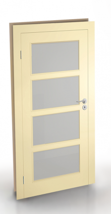 - оконное сатиновое стекло, матовое стекло(lacomat) или орнаментное украшены планками